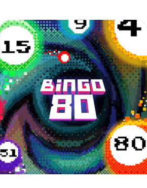 The game’s background consists of a galaxy in the shape of numbered bingo balls, with “Bingo 80” in its centre. The graphics are pixelated to go with the room’s retro theme.