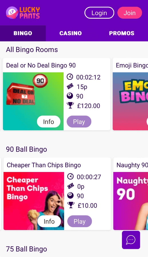 - If you’re in the app store looking for a Lucky Pants Bingo app, you won’t find one. But you can play on your mobile and tablet devices from a web browser as the site is fully optimised.