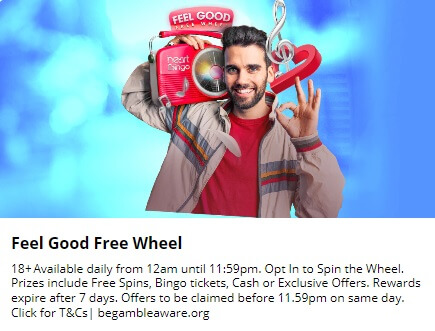 Gala Bingo and Gala Spins is another brand that likes a good wheel spin bonus to offer free spins and other types of bonus. These are a nice way to reward loyalty and encourage daily visits from players. Often when you play the spins you win you may stay on and play with real cash – but they also reward this with spins on more generous wheels, just like Heart Bingo.